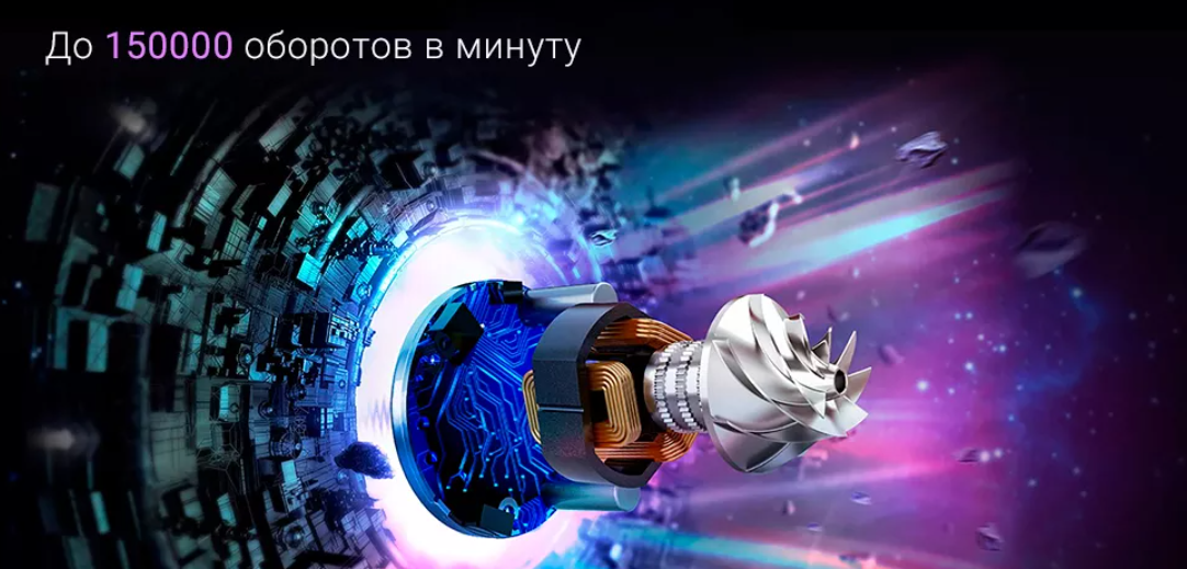 Беспроводной пылесос получил электродвигатель Space 5.0, скорость которого может достигать 150000 об/мин. В нем отлично сочетаются передовые технологии, точность материалов исполнения и мощность для тщательной уборки.