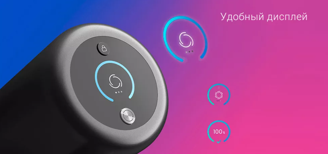 Встроенный дисплей обеспечивает отображение режима работы и остатка заряда аккумулятора в процентах.