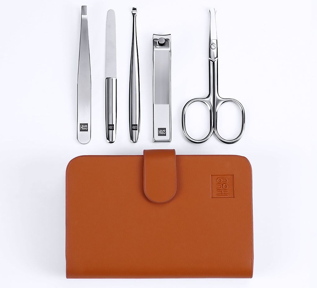 Маникюрный набор, состоящий из ножниц, книпсера, пилочки, лопатки для кутикулы. Весь комплект поставляется в компактном чехле из кожи, который позволяет удобно хранить и перевозить весь маникюрный инструмент.