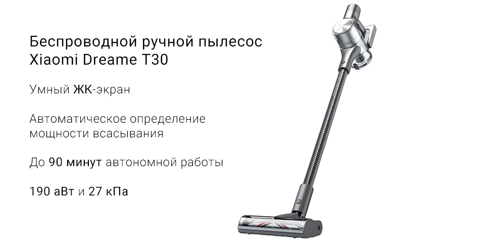Беспроводной пылесос Dreame T30 оснащен умным ЖК-дисплеем, который может отображать степень загрязнения очищаемого участка. В зависимости от уровня запыленности гаджет автоматически определяет режим работы. Максимальная мощность всасывания устройства составляет 190 аВт. Возможно до 90 минут автономной работы. Эффективная фильтрация, простое обслуживание, насадки – все для тщательной сухой уборки!
