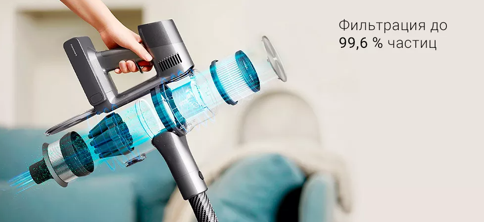 5-ступенчатая фильтрационная система улавливает до 99,6 % загрязняющих частиц размером до 0,3. Фильтры предотвращают повторное попадание пыли в воздух.