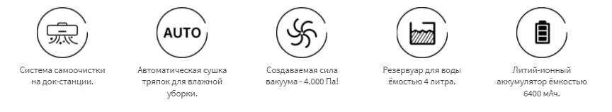 Два 4-литровых резервуара для воды, один для чистой воды, а другой для грязной, исключают необходимость частого наполнения или опорожнения. Благодаря массивной батарее емкостью 6400 мАч W10 убирает до 300 м? без подзарядки.