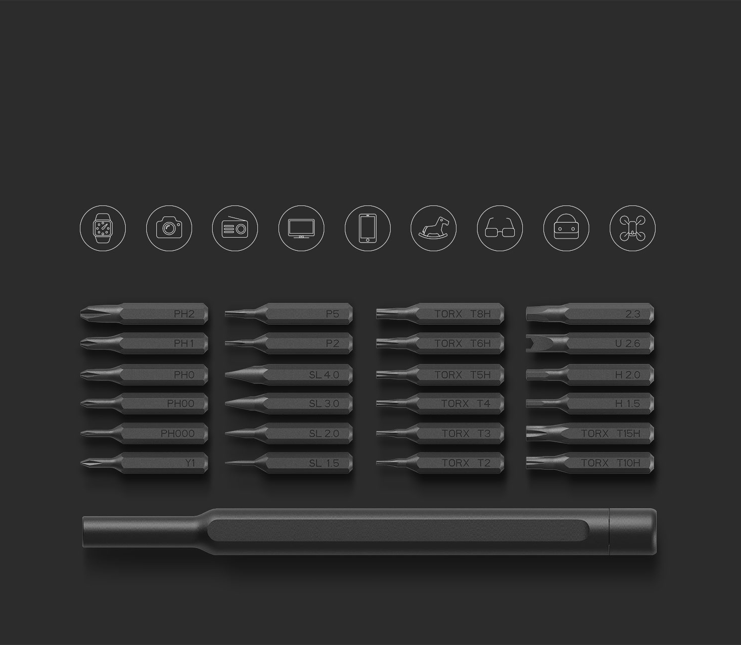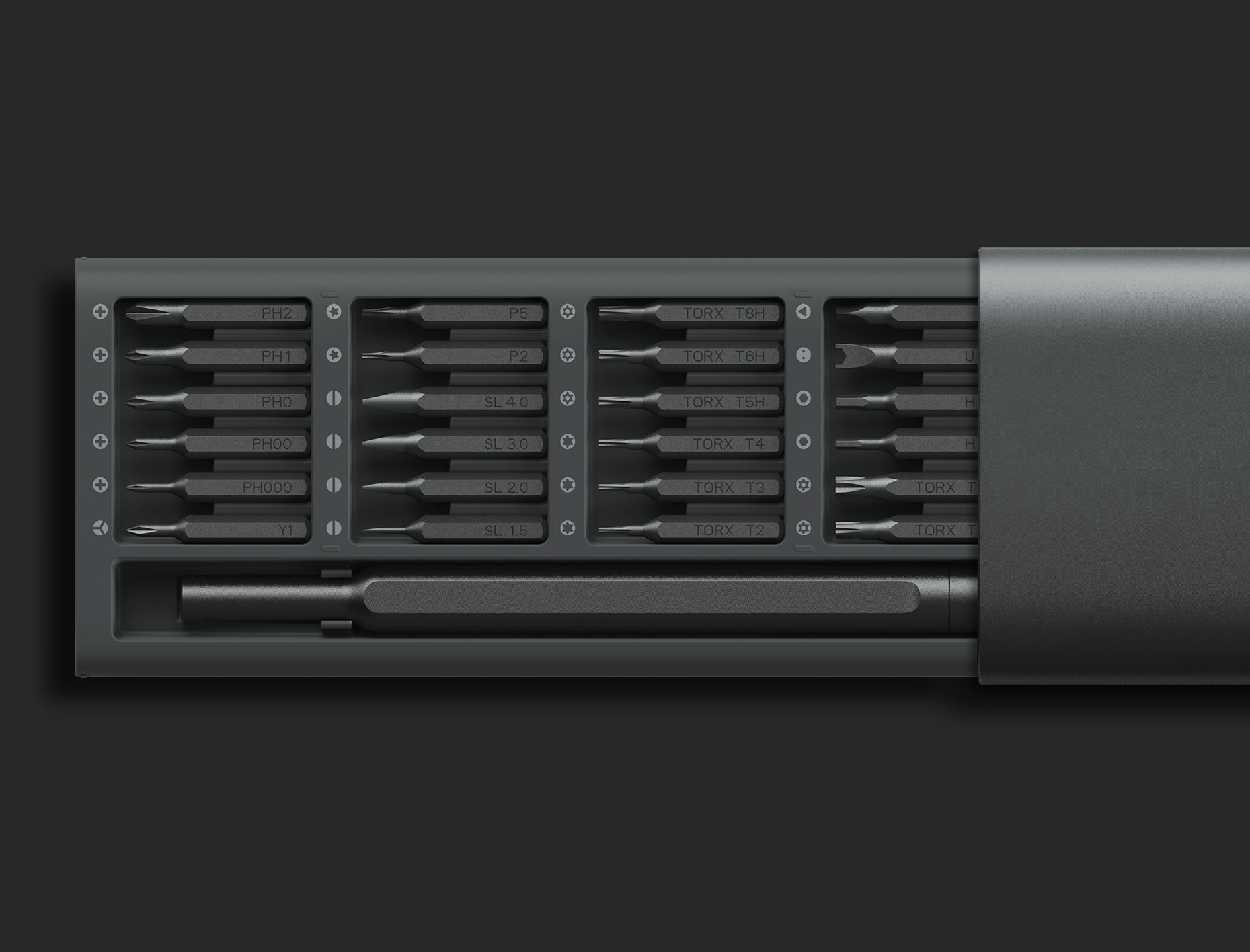Один набор отверток Xiaomi MiJia Screwdriver Set 24in1 Kit решит все ваши сборочные и ремонтные проблемы. Отличный вариант как для профессионального ремонта, так и для использования в быту. С ее помощью легко чинить часы, телефоны, компьютеры, приемники и многие другие приборы, используемые человеком дома. Все часто используемые насадки хранятся в кейсе. Насадки из легированной стали S2 с антикоррозийной обработкой и твёрдостью 60HRC фиксируются с помощью магнитного держателя, который крепко держит биты и не дает им соскользнуть. Работать стало так легко и удобно.