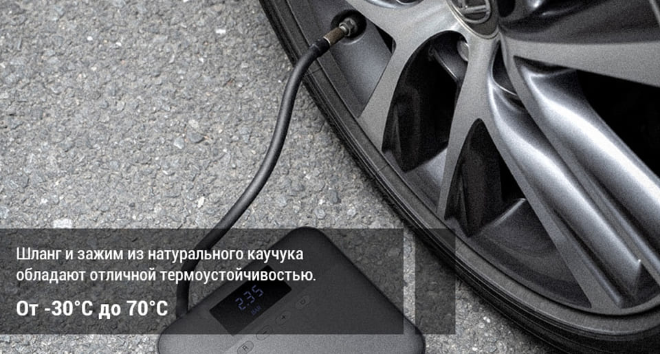 Несмотря на небольшие габариты, мотор достаточно мощный, чтобы справляться с большинством задач на дороге. Надувает шину среднего размера в течение 5 минут со скоростью 25 л / мин.