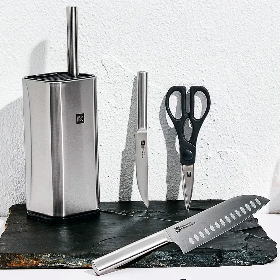 HUOHOU представляет набор стальных ножей (3 ножа + ножницы + подставка из нержавеющей стали) HUOHOU HU0095. Набор HUOHOU HU0095, в котором сочетаются функциональность, эргономика и высокое качество материалов, будет по-настоящему незаменимым на Вашей кухне.