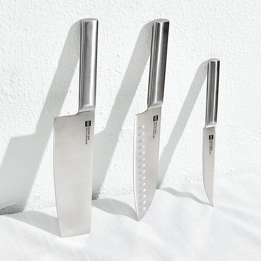 Набор HUOHOU HU0095 позволит решить практически любые предназначенные для кухонных ножей задачи максимально удобно и быстро. Нож-слайсер предназначен для нарезки продуктов тонкими и аккуратными ломтиками, с прочими задачами справятся либо классический универсальный нож, либо универсальный нож в японском стиле - нож сантоку.