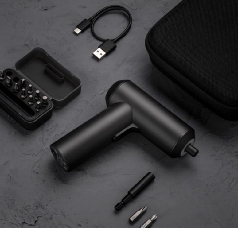 Отвертка / Набор бит / Кейс / Кабель для зарядки / Удлиняющий стержень / Чехол для отвертки |