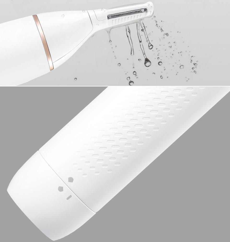 Контакт кожи с лезвиями полностью исключен. Насадка снабжена безопасной и гипоаллергенной стальной сеточкой. Волосы попадают в отверстия и немедленно сбриваются острыми лезвиями, расположенными внутри насадки. Слизистые не повреждаются, волоски срезаются, а не выдергиваются.