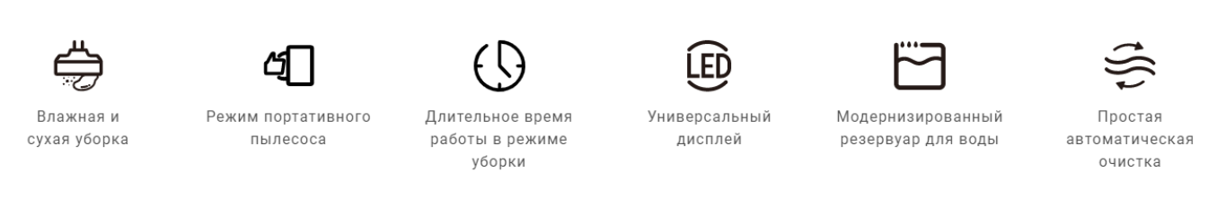Автоматический режим / режим впитывания влаги (пылесос для влажной и сухой уборки). Стандартный режим / режим «Турбо» (ручной пылесос) |
