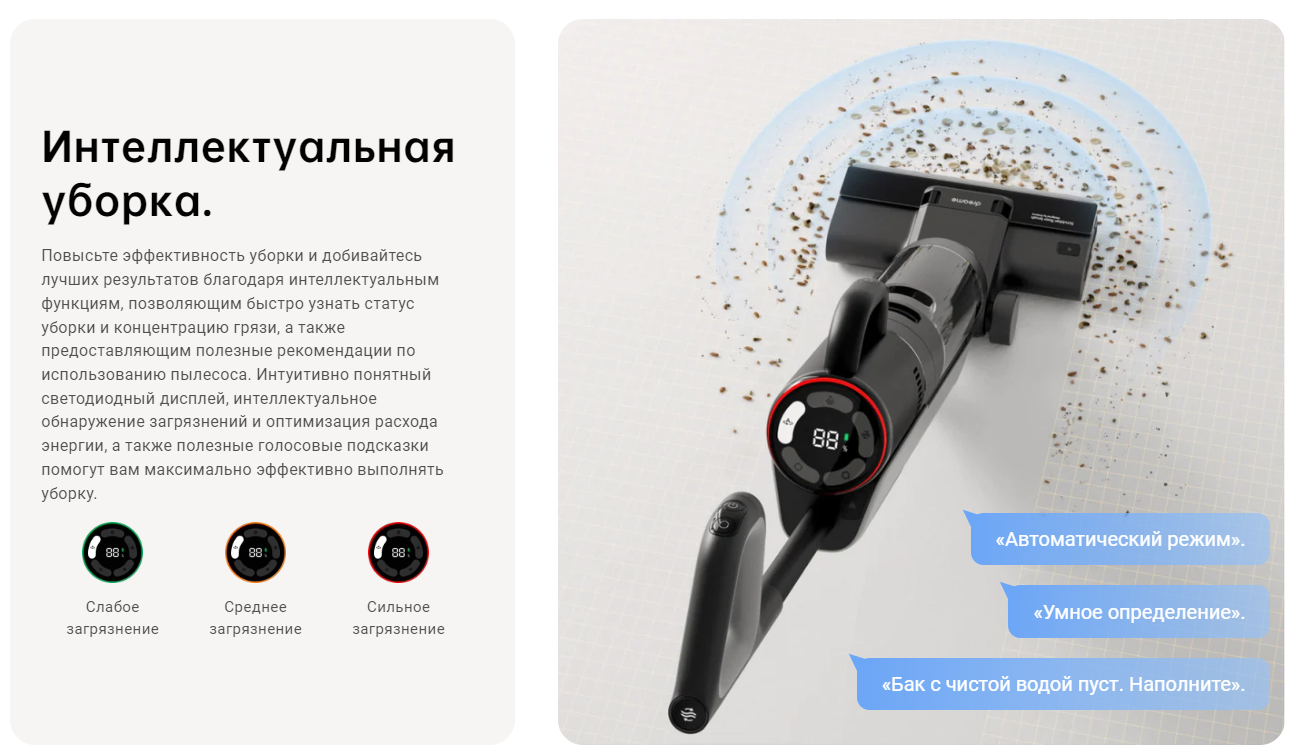 Dreame M12 - это машина для уборки с функцией самоочистки. В зависимости от уровня загрязнения пылесос автоматически регулирует мощность всасывания. Оцените замечательные возможности очистки твердых полов: уборка пролитых жидкостей, устранение загрязнений с помощью влажной уборки, удаление шерсти, грязи, пыли и мусора с помощью сухой уборки. Усовершенствованная система циркуляции воды и мощный двигатель обеспечивают эффективную сухую и влажную уборку, а зубчатый скребок предотвращает скапливание загрязнений на щетке, позволяя удалять грязь без следа и чистить пол до зеркального блеска.