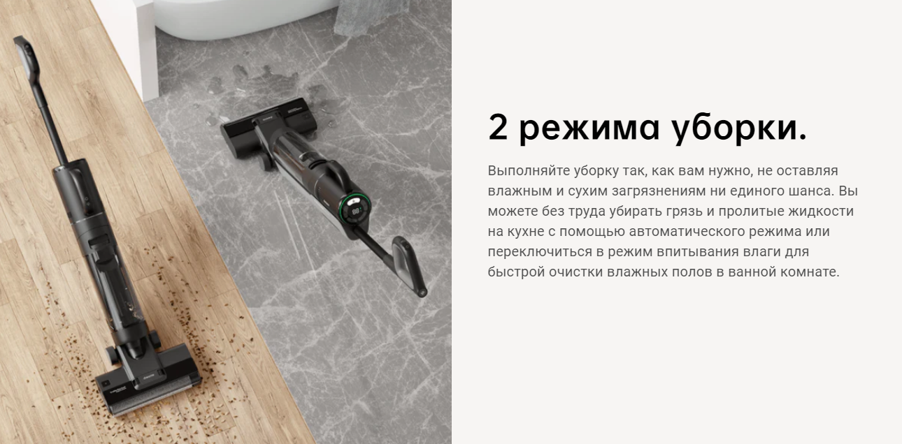 Насадка мягкой роликовой щетки обеспечивает бережную, но тщательную очистку, которая подойдет для любых типов твердых напольных покрытий в вашем доме — от деревянного пола в гостиной до линолеума на кухне и плитки в ванной комнате. Безрамочная конструкция, высокая скорость вращения щетки и чистящее средство со специальной формулой обеспечивают универсальные возможности уборки любых помещений в вашем доме.