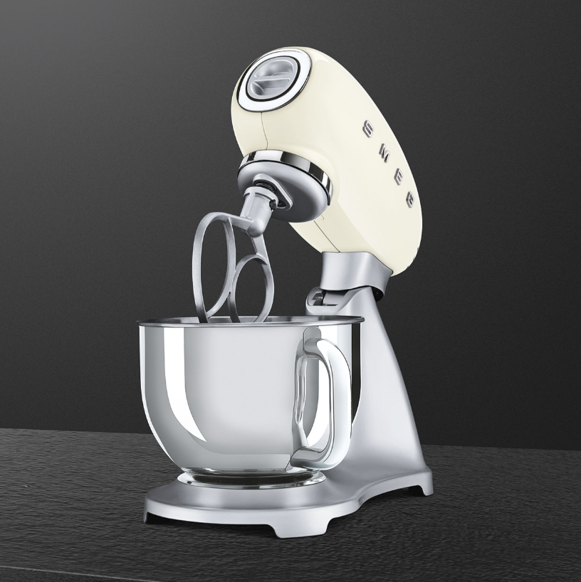 Планетарный миксер Smeg SMF13WHEU \мощность 800Вт ,Объем чаши 4,8л , 3 насадки ,белый ,стиль 50-х г.г.