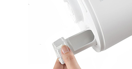 Наполнить водой резервуар можно двумя способами: через верхнее отверстие и боковое. Вертикальная шкала на передней панели увлажнителя позволяет контролировать уровень расхода воды, предотвращая полное ее выпаривание.ь Специальная губка, установленная в корпусе устройства, защищает внутренний резервуар от попадания пыли.