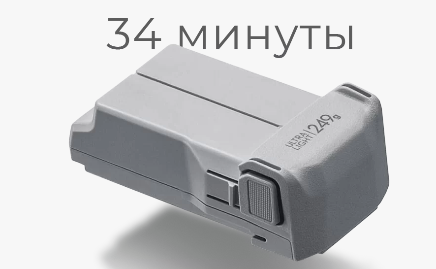 Функционирует коптер от аккумуляторной батареи нового поколения. Вы сможете вести съемку на протяжении 34 минут. Можно заменить батарею и установить Intelligent Flight Battery Plus, чтобы вести непрерывную съемку не менее 47 минут, это практически целый час
