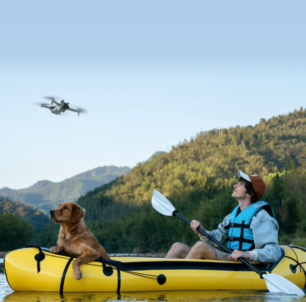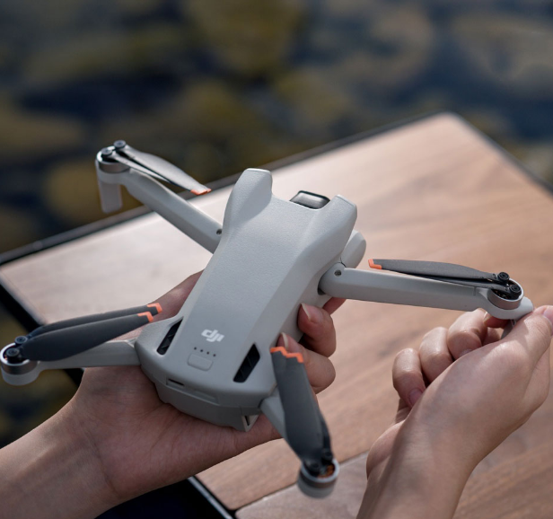 DJI Mini 3 складывается и весит менее 249 г. Легко брать в поездки и можно летать в большинстве регионов без регистрации.