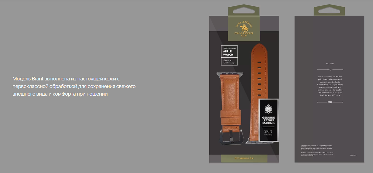 Ремешок Santa Barbara Polo & Racquet Club Brant для Apple Watch 42/ 44мм Braun