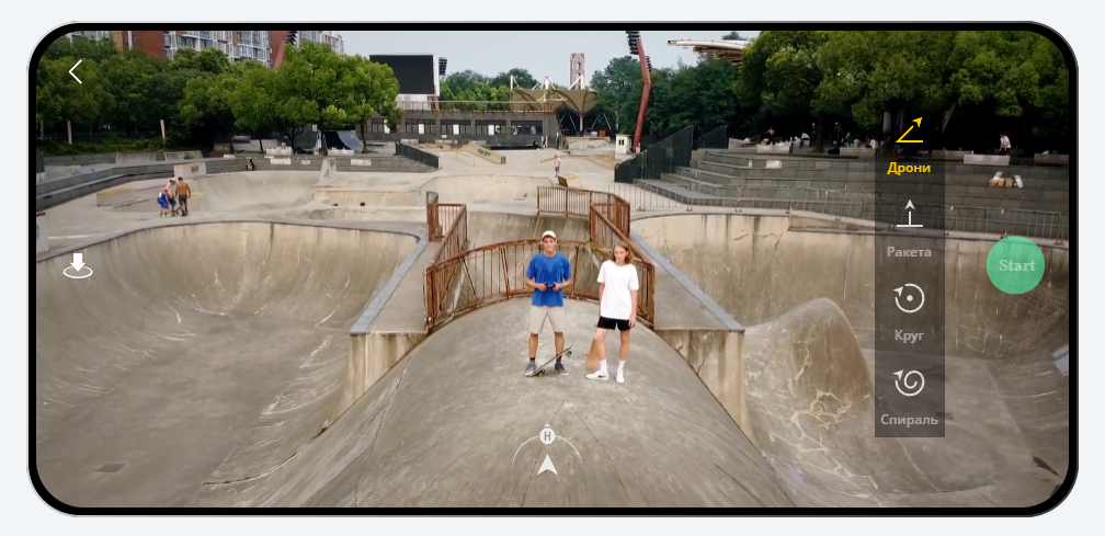 Всего в несколько нажатий вы можете создать голливудский шедевр с помощью режимов быстрой съемки «Дрони», «Круг», «Спираль» и «Ракета». Просто выберите один из режимов, а DJI Mini SE выполнит необходимые движения во время съемки. Автоматически сгенерированным коротким видео можно легко поделиться с друзьями в соцсетях.
