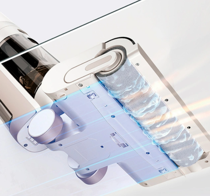 Обновленная конструкция чистящего блока. Обновлённая конструкция роликовой щётки Dreame T12 позволяет мыть пол вплотную к стенам и мебели.