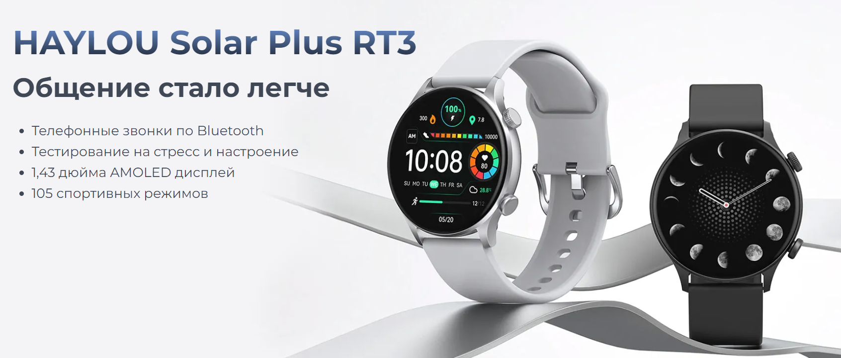 Большой 1,43-дюймовый круглый AMOLED-экран с разрешением 466*466 пикселей и беспрецедентной четкостью изображения обеспечивает точное и четкое изображение в любое время и в любом месте. Благодаря изысканному металлическому ободку и матовой обработке, смарт-часы Haylou Solar Plus RT3 устойчивы к коррозии и износостойки, правильно подстраиваясь под ваше запястье одновременно.