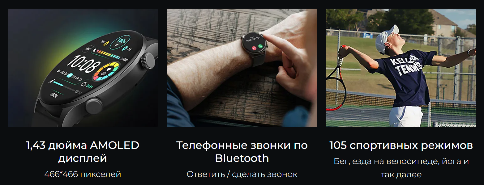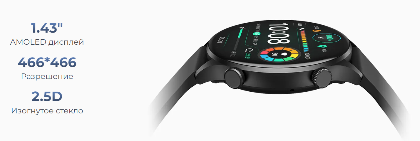 1,43-дюймовый AMOLED экран, разрешение 466*466 |