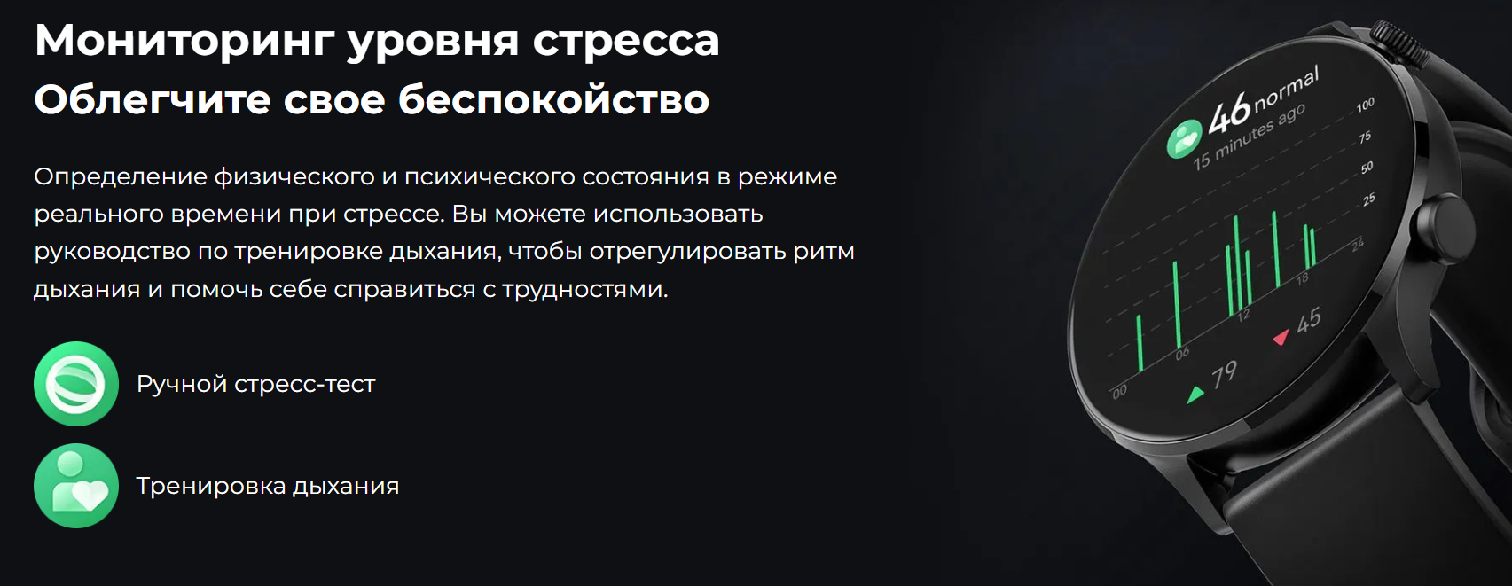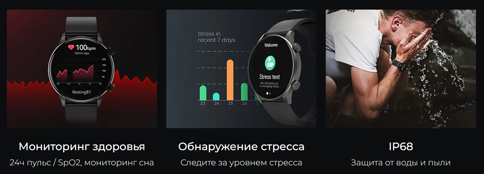 Звонки по Bluetooth, мониторинг сердечного ритма, определение содержания кислорода в крови, определение эмоций, определение стресса, определение сна |