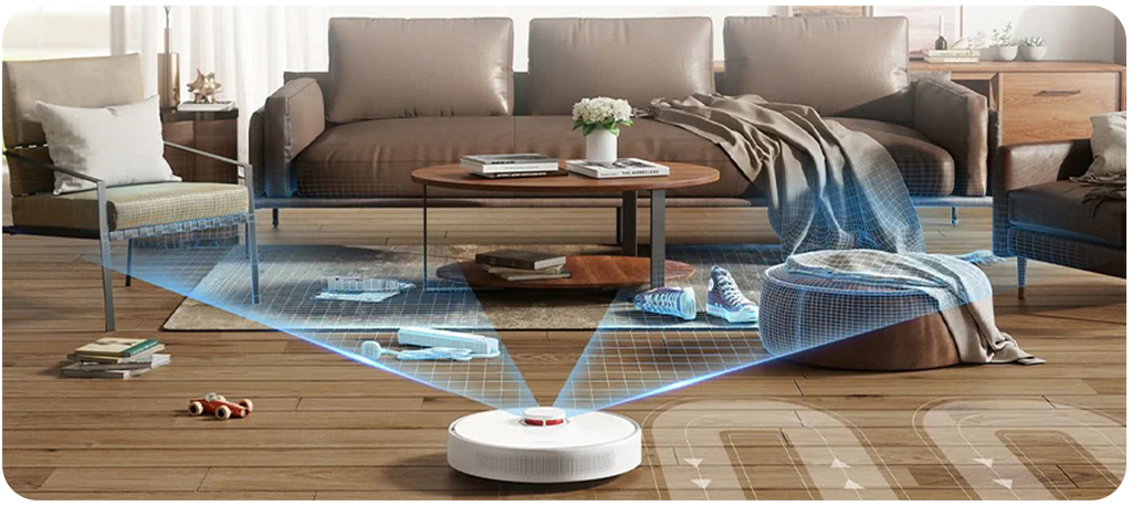 Датчик LiDAR робота-пылесоса позволяет устройству определять не только препятствия перед ним, но и высоту предметов, под которыми он проходит. Умная навигация выстраивает оптимальный маршрут, сканируя пространство