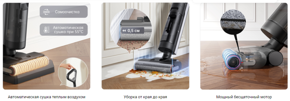 Беспроводной пылесос Dreame H12 Dual - это машина для уборки дома - новый моющий беспроводной пылесос с функцией самоочистки и сушки горячим воздухом. Основная щетка без рамок может убирать вплотную к стене. Мощное всасывание и качественное мытье соединились, чтобы подарить Вам непревзойденную чистоту. В зависимости от загрязнения пылесос автоматически регулирует мощность всасывания. Dreame H12 Dual соберет не только жидкость, но и разлитый суп, разбитое яйцо, соус или сок, а затем помоет и высушит свою щетку на станции. В отличие от традиционных пылесосов, Dreame H12 Dual предназначен для того, чтобы стать частью дома, его не нужно прятать в шкаф, пылесос и все аксессуары компактно хранятся на своей станции.