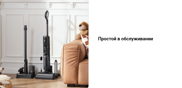 Dreame H12 Dual удобно хранить в вертикальном положении прямо на зарядной станции. На станции есть место для аккуратного и безопасного хранения аксессуаров. Dreame H12 Dual станет украшением Вашего интерьера, его не захочется прятать в шкаф