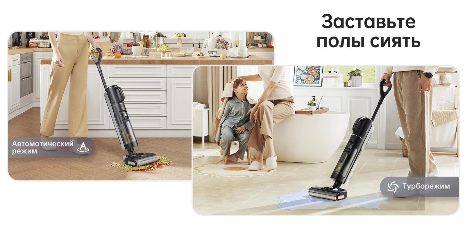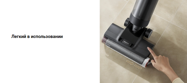 Для перемещения пылесоса Dreame H12 Dual не требуется прилагать больших усилий! Во время работы пылесос использует мощность двигателя для создания тягового усилия, обеспечивающего движение вперед. Вам просто нужно наклонить пылесос из вертикального положения, затем включить питание, и он начнет двигаться вперед сам по себе, когда начнет пылесосить. Больше нет необходимости толкать пылесос вперед.