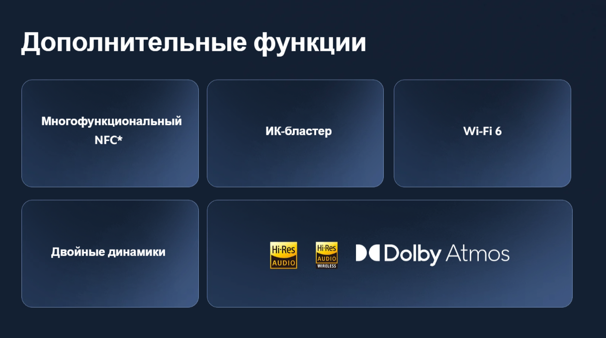 Сертификация с двумя динамиками Dolby Atmos Сертификация звука Hi-Res Сертификация беспроводного звука Hi-Res |