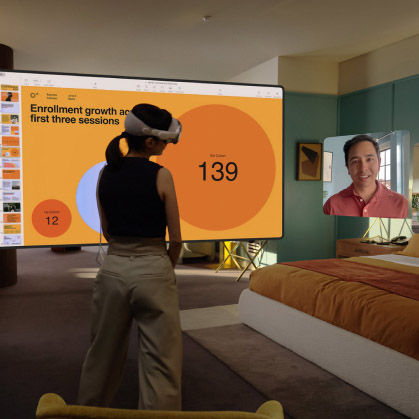 Apple Vision Pro предлагает бесконечное интерактивное пространство для работы с любимыми приложениями. От веб-страниц в Safari до записей в Заметках или диалогов в Сообщениях — располагайте все окна в любых местах вокруг себя и масштабируйте до любого размера, не отвлекаясь от реального мира.