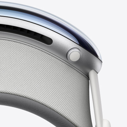 Одним из ключевых элементов для контроля Apple Vision Pro является колёсико Digital Crown, которое также используется во многих других устройствах компании. Оно открывает главный экран и меняет уровень интенсивности погружения в виртуальный мир. Сверху также есть кнопка для съёмки роликов и фотографий.