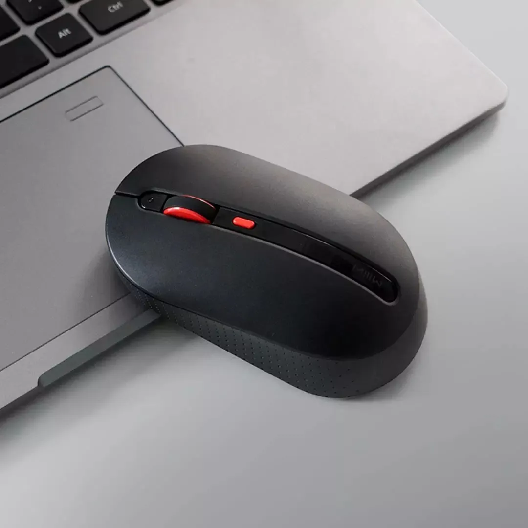 Есть возможность выбора одного из трех режимов работы оптического сенсора. Это 800 dpi, 1200 dpi и 1600 dpi. Компьютерная мышь поддерживает работу по радиоканалу 2,4 ГГц, радиус беспроводного действия достигает 6 метров. Светодиодный индикатор сигнализирует о выбранном режиме работы оптического датчика, а также предупреждает о низком заряде батареек.