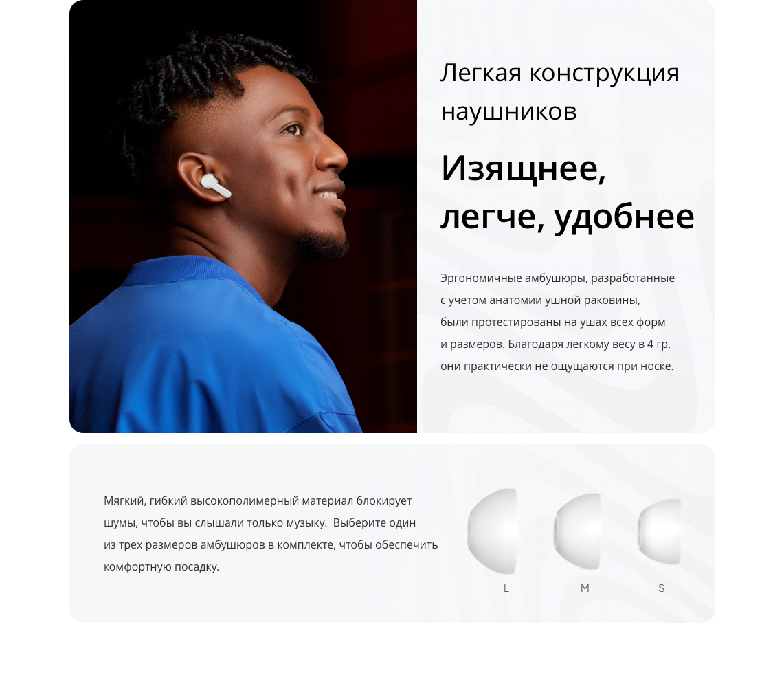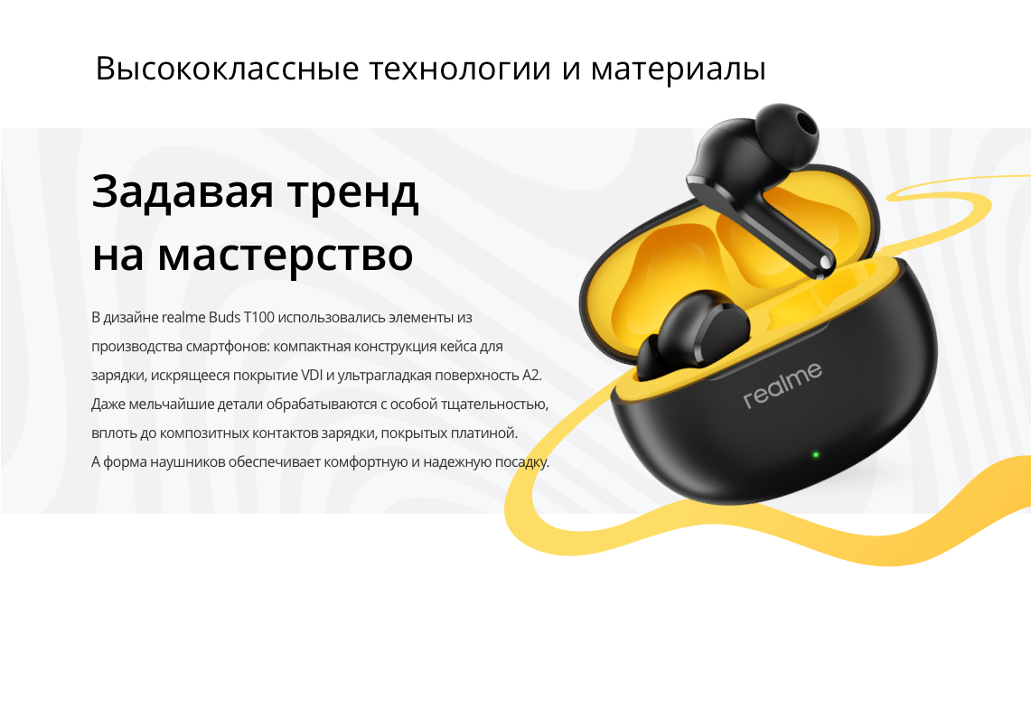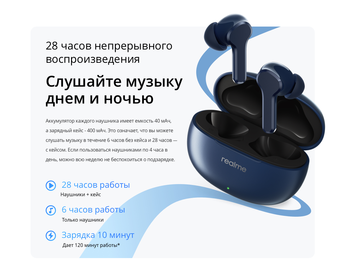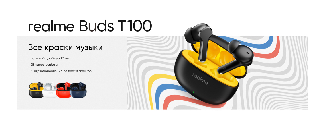 realme Buds T100, руководство пользователя, амбушюры 6 шт (размер М установлен на наушники) |