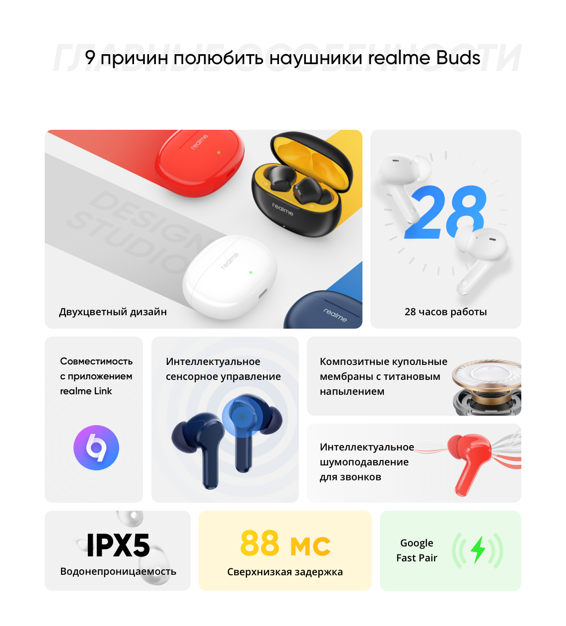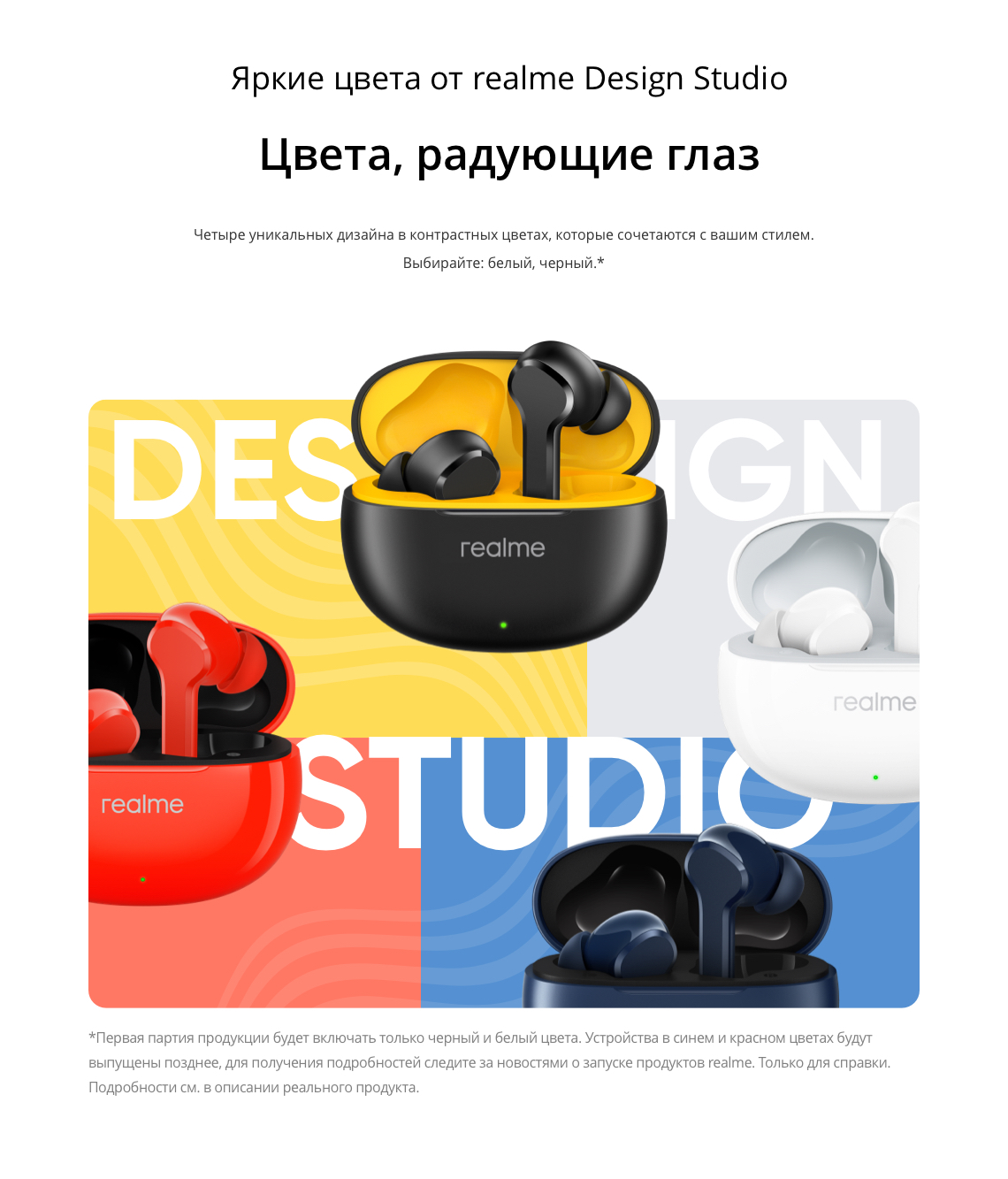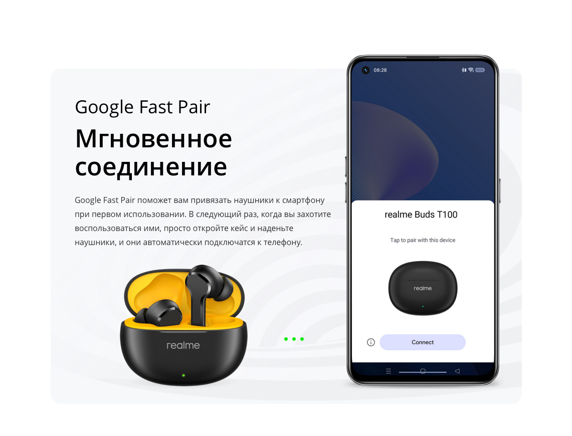 realme Buds T100, руководство пользователя, амбушюры 6 шт (размер М установлен на наушники) |