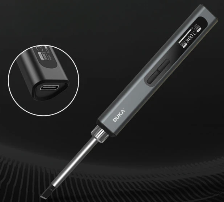 Duka EI1 представляет собой паяльник с регулируемой температурой, обеспечивающий точное управление процессом пайки. Независимо от типа материала или сложности проекта, вы можете легко настроить температуру для оптимальных результатов.