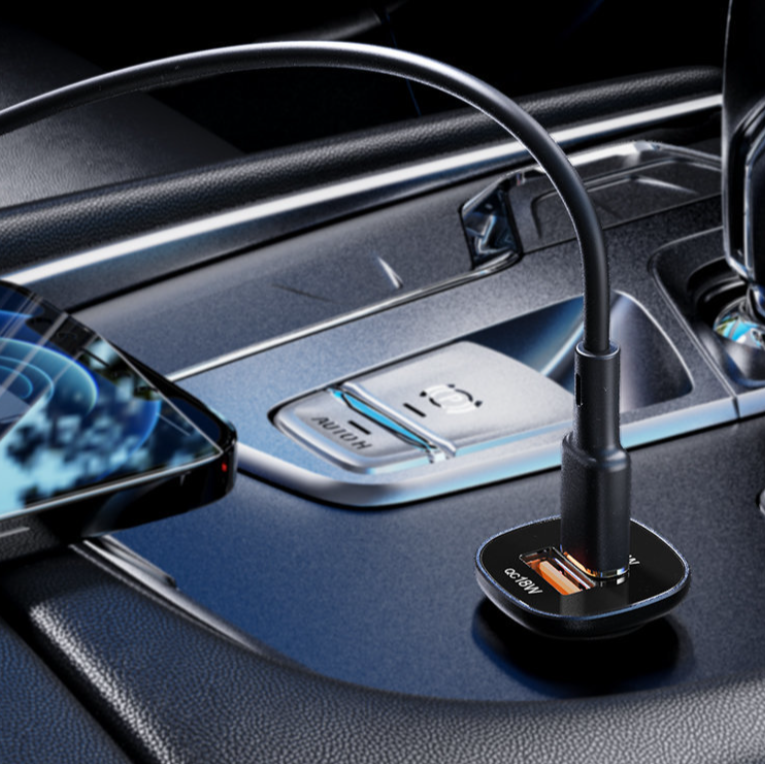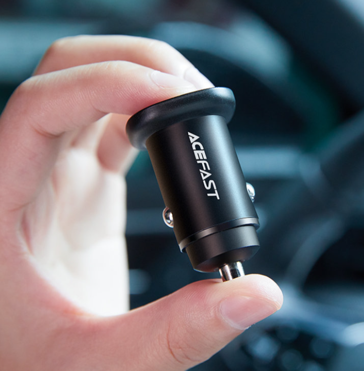 • Быстрое автомобильное зарядное устройство Acefast. Оно имеет 2 порта, USB Type C и USB-порт USB. Первый разъем USB Type C позволяет заряжать с максимальной мощностью 20 Вт, а USB-разъем - до 18 Вт. Обеспечивает быструю зарядку, в том числе в стандартах PPS, Power Delivery, Quick Charge 3.0, AFC и FCP. К нему можно подключить 2 устройства одновременно. Он изготовлен из огнестойкого материала для ПК. Оно оснащено множеством средств защиты, таких как защита от перегрева, перенапряжения, высокого напряжения или перегрузки. • Работает с мощностью до 38 Вт. Зарядное устройство передает ток мощностью 20 Вт через выходной порт USB Type C и 18 Вт через USB.