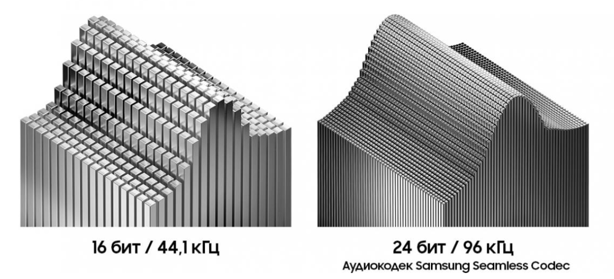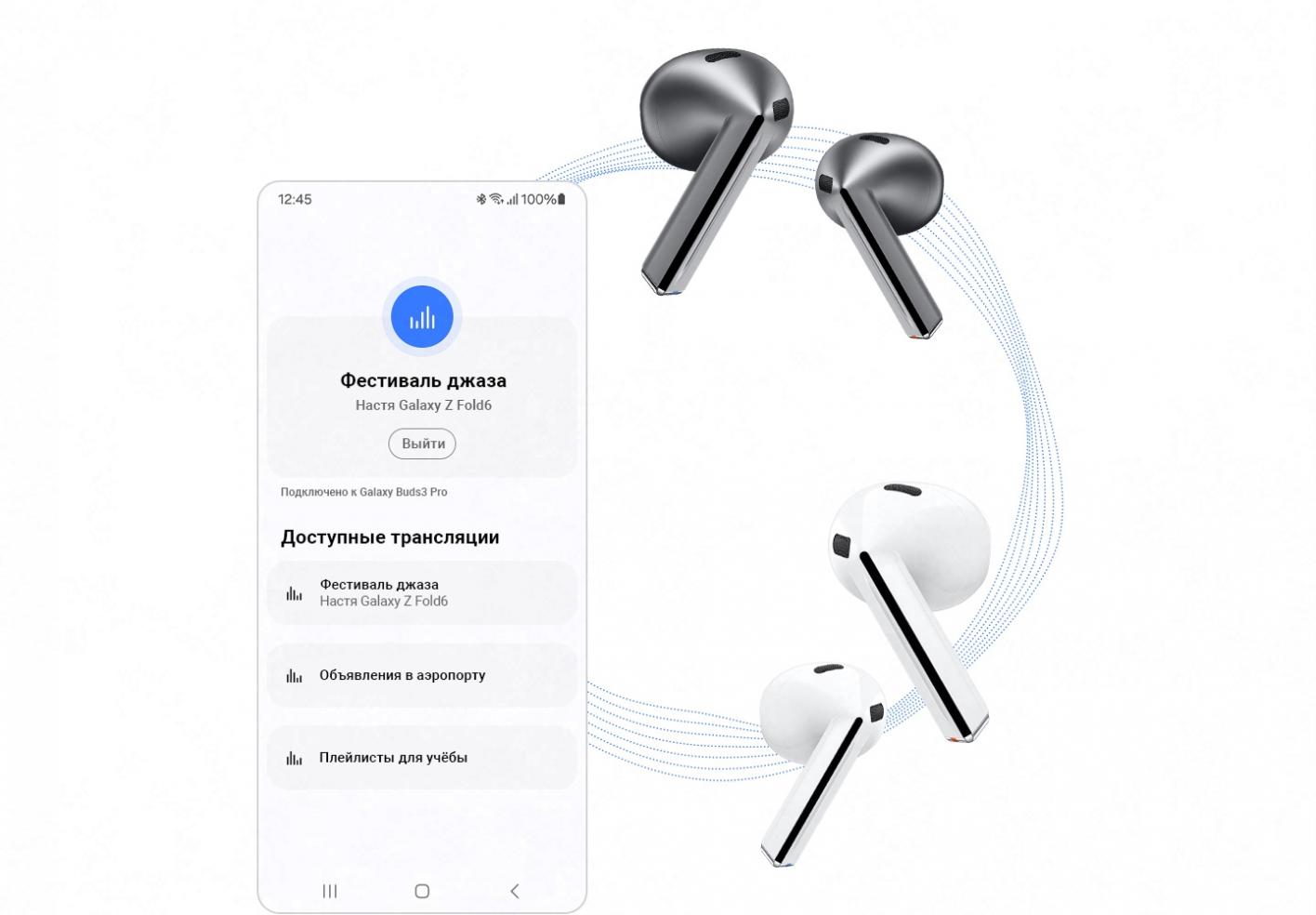 Galaxy Buds3 словно переносят вас в студию звукозаписи. Благодаря обновленному аудиокодеку SSC (Samsung Seamless Codec) наушники воспроизводят звук с максимальной частотой дискретизации 96 кГц и глубиной до 24 бит.