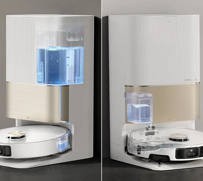 Базовая станция Dreame X40 Ultra умеет заправлять робот-пылесос водой и моющим раствором для того, чтобы пылесосу приходилось реже возвращаться на базу.