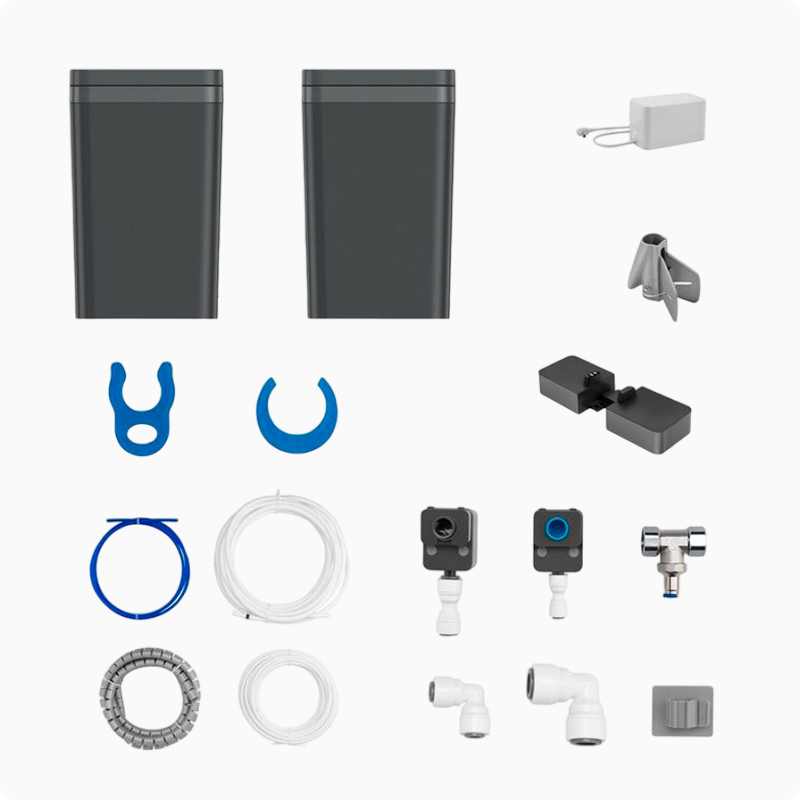 Комплект Xiaomi Dreame RAW4 включает все необходимые компоненты, чтобы обеспечить надежное подключение к водопроводной и канализационной системам, заменяя при этом стандартные резервуары пылесоса. В состав набора входят резервуар для чистой воды, резервуар для грязной воды, электромагнитный клапан, который регулирует поток воды, угловые соединители и фитинги различных размеров для максимально точной подгонки к системе, а также трубки диаметром 1/4" и 3/8", специально предназначенные для перемещения чистой и грязной воды. Благодаря этим элементам, можно легко адаптировать систему под свои нужды, не сталкиваясь с проблемами несовместимости или сложной установки. Наличие блока управления и органайзера для кабелей делает монтаж и настройку комплекта максимально удобными и простыми. Все компоненты набора идеально согласованы между собой и с устройствами Xiaomi Dreame L30 Ultra и L20 Ultra, что обеспечивает их эффективную совместную работу.