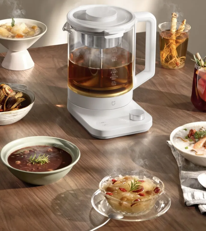 многофункциональный электрический чайник ёмкостью 1,8 л. В нём можно кипятить воду, заваривать чай, варить супы и напитки. Керамическое антипригарное покрытие не оставляет следов и легко отмывается губкой. Мягкое кипячение и многоступенчатый контроль температуры сохраняют полезные вещества и приятный аромат чая. С помощью мобильного приложения можно дистанционно управлять умным чайником и следовать больше 50 рецептам от команды шеф-поваров. В комплекте идёт кастрюлька для тушения.